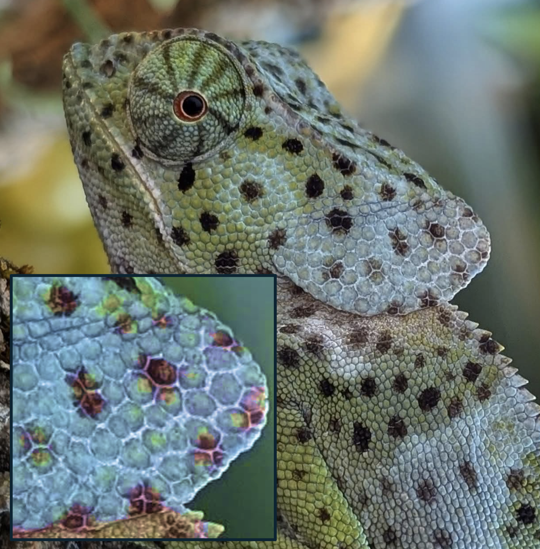 Reptilian integumentary morphology, particularly scale development and structure, varies widely across taxa and serves multiple biological functions—ranging from protection and thermoregulation to social signaling and camouflage. In chameleons, the cranial scalation exhibits exceptional structural complexity and individual variability, especially in species inhabiting forested and visually dense environments.