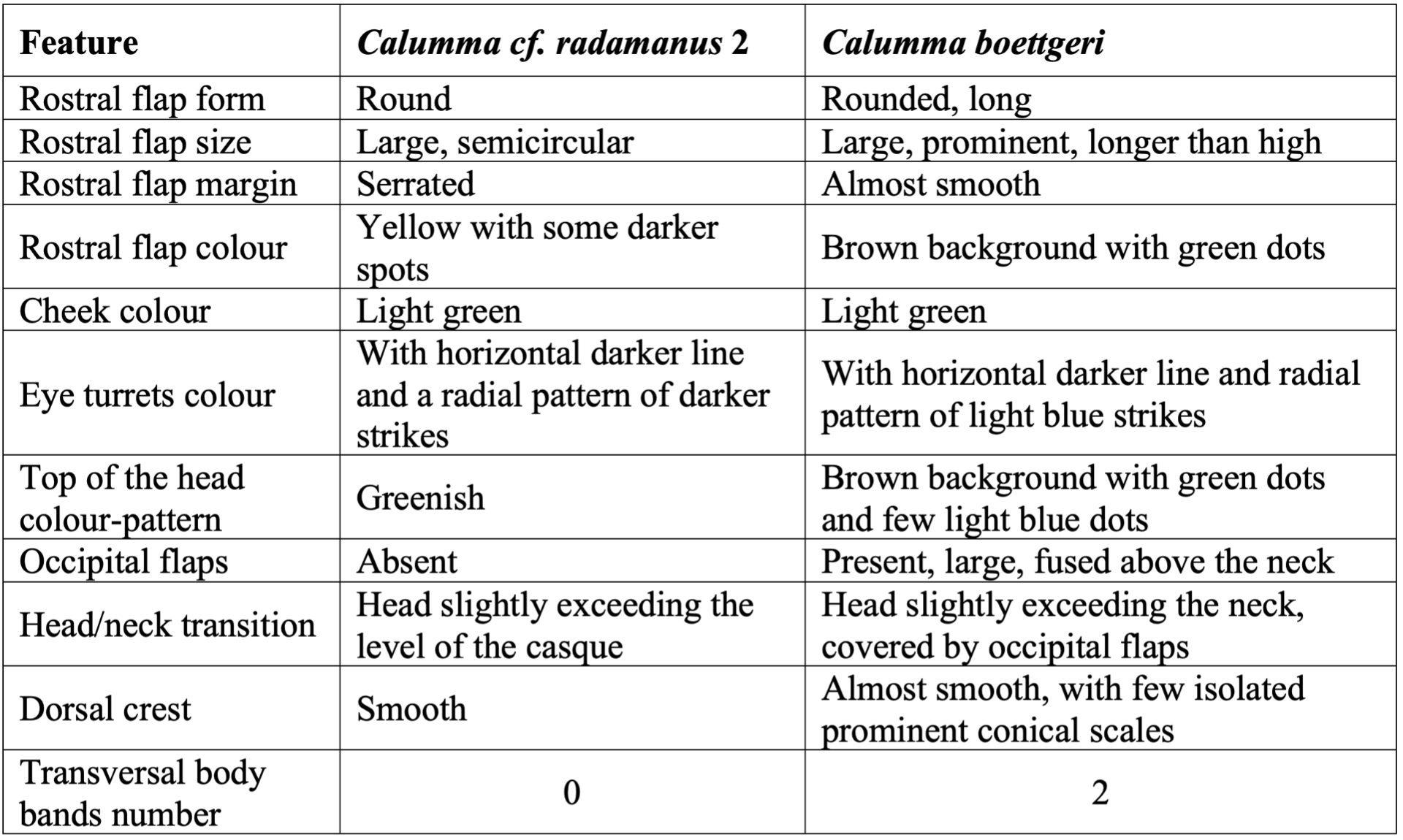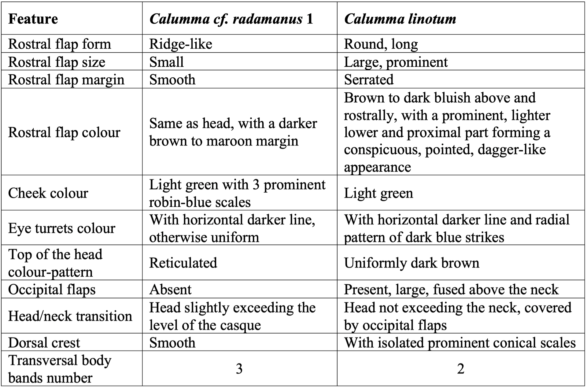 Clear character displacement was evident when compared with the syntopic, similarly sized Calumma linotum, identifiable even in females: